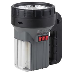 Фонарь с тремя режимами работы. Первый режим - 9 светодиодов, они светят ярким белым светом и это самый энергоэкономичный режим в фонаре. Второй режим - люминесцентная лампа, ведь фонарь можно использовать как светильник, а люминесцентная лампа дает хорошее освещение при экономном потреблении энергии, что немаловажно в полевых условиях. И третий - галогенная лампа, прожектор, самый мощный режим, пригодится, если нужно что-то рассмотреть вдалеке. Можно включить все три режима при необходимости.
