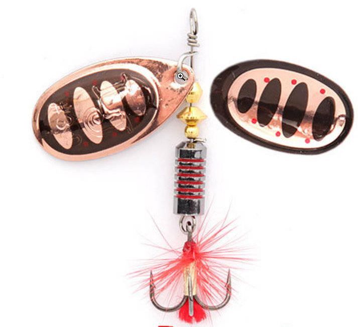 новая серия вращающихся блесен. В этих приманках используются современные конструктивные решения, которые обеспечивают надежную и стабильную игру блесен, и, что самое главное, делают их очень привлекательными для любой хищной рыбы. Главный элемент блесен – вращающийся лепесток. Он очень легок, сделан из латуни и обладает хорошими динамическими показателями при вращении в воде, что позволяет делать проводку приманки на минимальной скорости. Лепесток «заводится» сразу, как только блесна начинает движение. Лепестки окрашены с двух сторон. С какой бы стороны хищная рыба не смотрела на приманку, ее расцветка остается одинаковой и привлекательной, что повышает интерес к блесне и, в итоге, приводит к результативной атаке. Немаловажная деталь – сердечник приманок, от которого зависит вес и дальнобойность приманки, а также ее устойчивость в воде. На всех тройниках связана яркая приманка