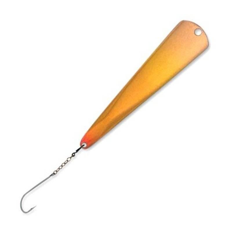 Финский бренд основанный ещё в далеком 1967 году, ориентируется исключительно на производстве различных приманок для рыболовства. На протяжении всего своего существования этот бренд зарекомендовал себя очень хорошо, выпустив несколько моделей приманок, которые пользуются спросом до сих пор. Многие рыбаки, которые опробовали приманки этого производителя, остались очень довольны, отмечая качество используемых элементов и высокую эффективность на большой глубине. На данный момент, Kuusamo имеет большую популярность как на отечественном, так и на мировом рынке. Если вам нужны блесны на зимнюю рыбалку, то мы рекомендуем обратить ваше внимание на модель в цвете. Модель представляет из себя плоский кусок из нержавеющего материала, исполненный в форме мелкой рыбки с единственным заостренным крючком на хвостовой части. Продуманный яркий окрас без каких-либо трудов заинтересует проплывающего мимо хищника, а игра блесны в воде спровоцирует рыбу на атаку.