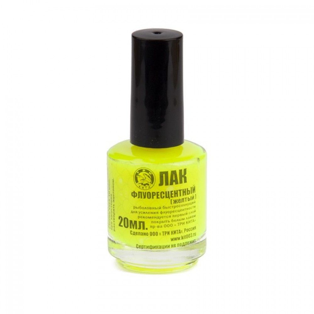 Флуоресцентный лак чаще всего применяется рыболовами, так как считается наиболее ярким. При попадании ультрафиолетового излучения на изделие, покрытое им, оно начнет светиться, чем привлечет большое количество рыбы даже с самых дальних расстояний. Данная разновидность лака максимально быстро высыхает и имеет стойкость к выгоранию и влаге. При необходимости изделие следует покрывать в 2-3 слоя.