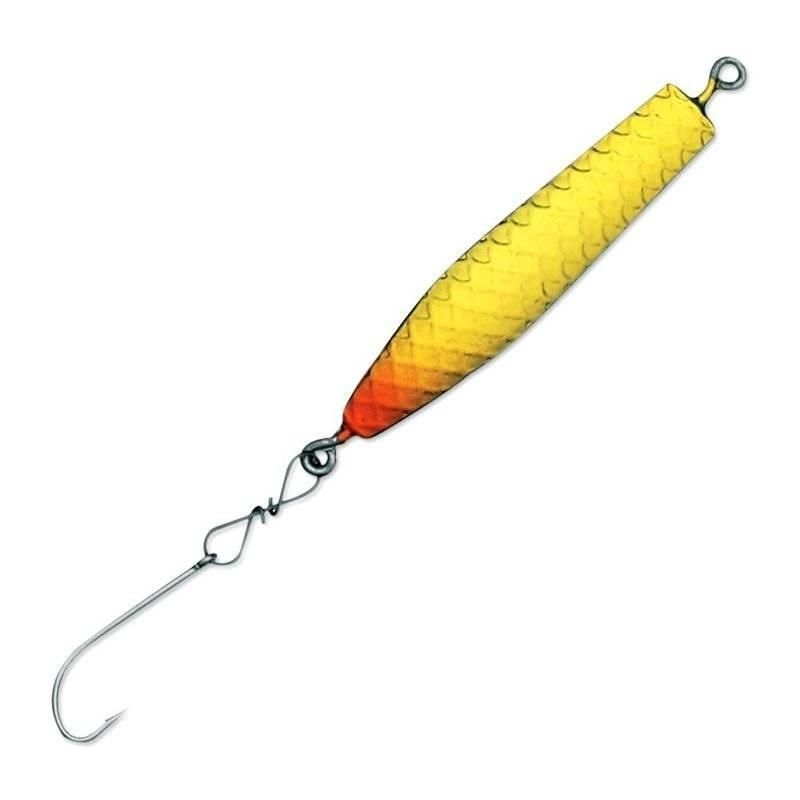 Финский бренд основанный ещё в далеком 1967 году, ориентируется исключительно на производстве различных приманок для рыболовства. На протяжении всего своего существования этот бренд зарекомендовал себя очень хорошо, выпустив несколько моделей приманок, которые пользуются спросом до сих пор. Многие рыбаки, которые опробовали приманки этого производителя, остались очень довольны, отмечая качество используемых элементов и высокую эффективность на большой глубине. На данный момент, Kuusamo имеет большую популярность как на отечественном, так и на мировом рынке. Если вам нужны блесны на зимнюю рыбалку, то мы рекомендуем обратить ваше внимание на модель в цвете. Модель представляет из себя плоский кусок из нержавеющего материала, исполненный в форме мелкой рыбки с единственным заостренным крючком на хвостовой части. Продуманный яркий окрас без каких-либо трудов заинтересует проплывающего мимо хищника, а игра блесны в воде спровоцирует рыбу на атаку.