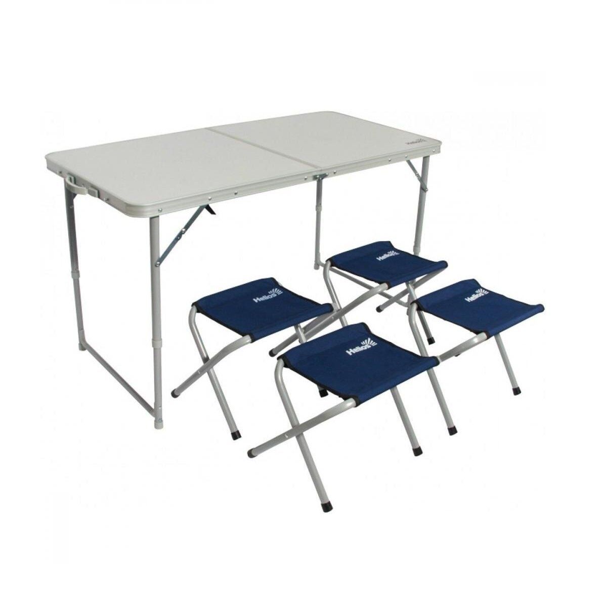 Набор мебели (стол и 4 табурета) - отличное решение для выезда на природу. Табуреты складываются внутрь стола, что существенно экономит место при транспортировке. Характеристики: Размер стола: 120х60х70см.