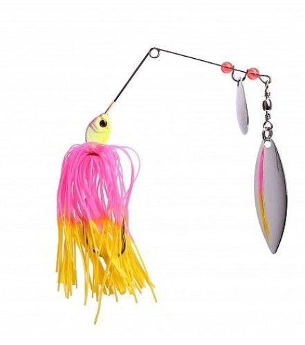 Спиннербейт - приманка, специально разработанная для ловли хищной рыбы в заросших и закоряженных водоёмах с помощью спиннинга. Спиннербейт представляет собой небольшой проволочный уголок, к верхнему концу которого смонтирован вращающийся лепесток, или лепестки, к нижнему — свинцовая головка (типа джиговой), с большим одинарным крючком и искусственной, резиновой бахромой («юбкой») по типу щупалец осьминога. «Юбка» может быть заменена на искусственного червяка, рыбку. При проводке тяжелая головка оказывается снизу, а лепестки — сверху. Лепестки вращаются, пряди «юбки» колышутся, то собираясь вместе, то расходясь в стороны. Возможно, секрет действия спиннербейтов на рыбу заключается в сочетании множества различных эффектов: колебаний, звуковых, световых и цветовых раздражителей, создаваемых вращением лепестков, движением «юбки» и вибрацией проволочной арматуры. Всё это одновременно воспринимают органы зрения, слуха и боковой линии рыбы, раздражая и заставляя её атаковать совершенно неестественную добычу. Одно из главных достоинств спиннербейта — его высокая «проходимость». При ловле в зарослях подводной растительности ему почти нет равных. Это можно объяснить тремя особенностями приманки. Во-первых, поддев одинарного крючка спиннербейта расположен в плоскости уголка, между его плечами, что значительно уменьшает вероятность зацепа за водную растительность. Во-вторых, при проводке спиннербейт всегда располагается в вертикальной плоскости, что позволяет ему легко проходить между вертикально тянущимися со дна к поверхности стеблями водной растительности. В-третьих, вращающаяся блесна вибрируя, как пропеллер, раздвигает водоросли. И даже в том редком случае, когда спиннербейт наматывает их на себя, достаточно сделать резкий рывок спиннингом и они самостоятельно отцепляются, позволяя продолжить проводку приманки.