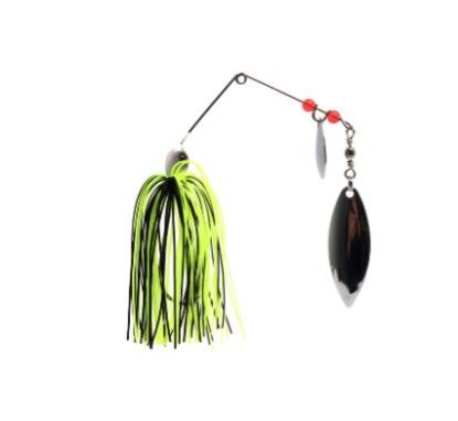 Спиннербейт - приманка, специально разработанная для ловли хищной рыбы в заросших и закоряженных водоёмах с помощью спиннинга. Спиннербейт представляет собой небольшой проволочный уголок, к верхнему концу которого смонтирован вращающийся лепесток, или лепестки, к нижнему — свинцовая головка (типа джиговой), с большим одинарным крючком и искусственной, резиновой бахромой («юбкой») по типу щупалец осьминога. «Юбка» может быть заменена на искусственного червяка, рыбку. При проводке тяжелая головка оказывается снизу, а лепестки — сверху. Лепестки вращаются, пряди «юбки» колышутся, то собираясь вместе, то расходясь в стороны. Возможно, секрет действия спиннербейтов на рыбу заключается в сочетании множества различных эффектов: колебаний, звуковых, световых и цветовых раздражителей, создаваемых вращением лепестков, движением «юбки» и вибрацией проволочной арматуры. Всё это одновременно воспринимают органы зрения, слуха и боковой линии рыбы, раздражая и заставляя её атаковать совершенно неестественную добычу. Одно из главных достоинств спиннербейта — его высокая «проходимость». При ловле в зарослях подводной растительности ему почти нет равных. Это можно объяснить тремя особенностями приманки. Во-первых, поддев одинарного крючка спиннербейта расположен в плоскости уголка, между его плечами, что значительно уменьшает вероятность зацепа за водную растительность. Во-вторых, при проводке спиннербейт всегда располагается в вертикальной плоскости, что позволяет ему легко проходить между вертикально тянущимися со дна к поверхности стеблями водной растительности. В-третьих, вращающаяся блесна вибрируя, как пропеллер, раздвигает водоросли. И даже в том редком случае, когда спиннербейт наматывает их на себя, достаточно сделать резкий рывок спиннингом и они самостоятельно отцепляются, позволяя продолжить проводку приманки.