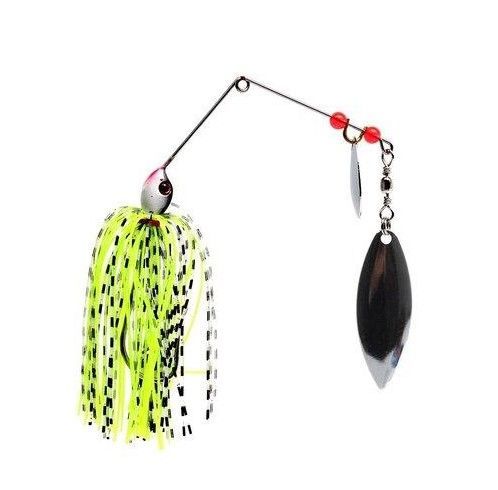 Спиннербейт - приманка, специально разработанная для ловли хищной рыбы в заросших и закоряженных водоёмах с помощью спиннинга. Спиннербейт представляет собой небольшой проволочный уголок, к верхнему концу которого смонтирован вращающийся лепесток, или лепестки, к нижнему — свинцовая головка (типа джиговой), с большим одинарным крючком и искусственной, резиновой бахромой («юбкой») по типу щупалец осьминога. «Юбка» может быть заменена на искусственного червяка, рыбку. При проводке тяжелая головка оказывается снизу, а лепестки — сверху. Лепестки вращаются, пряди «юбки» колышутся, то собираясь вместе, то расходясь в стороны. Возможно, секрет действия спиннербейтов на рыбу заключается в сочетании множества различных эффектов: колебаний, звуковых, световых и цветовых раздражителей, создаваемых вращением лепестков, движением «юбки» и вибрацией проволочной арматуры. Всё это одновременно воспринимают органы зрения, слуха и боковой линии рыбы, раздражая и заставляя её атаковать совершенно неестественную добычу. Одно из главных достоинств спиннербейта — его высокая «проходимость». При ловле в зарослях подводной растительности ему почти нет равных. Это можно объяснить тремя особенностями приманки. Во-первых, поддев одинарного крючка спиннербейта расположен в плоскости уголка, между его плечами, что значительно уменьшает вероятность зацепа за водную растительность. Во-вторых, при проводке спиннербейт всегда располагается в вертикальной плоскости, что позволяет ему легко проходить между вертикально тянущимися со дна к поверхности стеблями водной растительности. В-третьих, вращающаяся блесна вибрируя, как пропеллер, раздвигает водоросли. И даже в том редком случае, когда спиннербейт наматывает их на себя, достаточно сделать резкий рывок спиннингом и они самостоятельно отцепляются, позволяя продолжить проводку приманки.