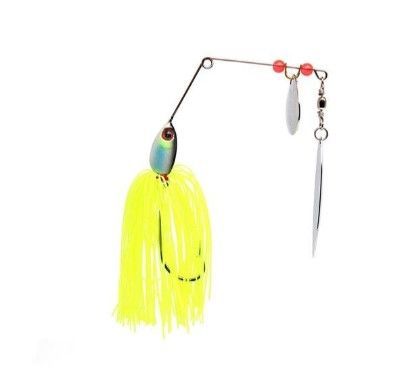 Спиннербейт - приманка, специально разработанная для ловли хищной рыбы в заросших и закоряженных водоёмах с помощью спиннинга. Спиннербейт представляет собой небольшой проволочный уголок, к верхнему концу которого смонтирован вращающийся лепесток, или лепестки, к нижнему — свинцовая головка (типа джиговой), с большим одинарным крючком и искусственной, резиновой бахромой («юбкой») по типу щупалец осьминога. «Юбка» может быть заменена на искусственного червяка, рыбку. При проводке тяжелая головка оказывается снизу, а лепестки — сверху. Лепестки вращаются, пряди «юбки» колышутся, то собираясь вместе, то расходясь в стороны. Возможно, секрет действия спиннербейтов на рыбу заключается в сочетании множества различных эффектов: колебаний, звуковых, световых и цветовых раздражителей, создаваемых вращением лепестков, движением «юбки» и вибрацией проволочной арматуры. Всё это одновременно воспринимают органы зрения, слуха и боковой линии рыбы, раздражая и заставляя её атаковать совершенно неестественную добычу. Одно из главных достоинств спиннербейта — его высокая «проходимость». При ловле в зарослях подводной растительности ему почти нет равных. Это можно объяснить тремя особенностями приманки. Во-первых, поддев одинарного крючка спиннербейта расположен в плоскости уголка, между его плечами, что значительно уменьшает вероятность зацепа за водную растительность. Во-вторых, при проводке спиннербейт всегда располагается в вертикальной плоскости, что позволяет ему легко проходить между вертикально тянущимися со дна к поверхности стеблями водной растительности. В-третьих, вращающаяся блесна вибрируя, как пропеллер, раздвигает водоросли. И даже в том редком случае, когда спиннербейт наматывает их на себя, достаточно сделать резкий рывок спиннингом и они самостоятельно отцепляются, позволяя продолжить проводку приманки.