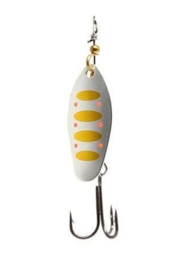 В этих приманках используются современные конструктивные решения, которые обеспечивают надежную и стабильную игру блесен, и, что самое главное, делают их очень привлекательными для любой хищной рыбы. Главный элемент блесен – вращающийся лепесток. Он очень легок, сделан из латуни и обладает хорошими динамическими показателями при вращении в воде, что позволяет делать проводку приманки на минимальной скорости. Лепесток «заводится» сразу, как только блесна начинает движение. Лепестки окрашены с двух сторон. С какой бы стороны хищная рыба не смотрела на приманку, ее расцветка остается одинаковой и привлекательной, что повышает интерес к блесне и, в итоге, приводит к результативной атаке. Немаловажная деталь – сердечник приманок, от которого зависит вес и дальнобойность приманки, а также ее устойчивость в воде. На всех тройниках связана яркая мушка, основное предназначение которой – снять последние сомнения у приготовившейся к атаке хищной рыбы.