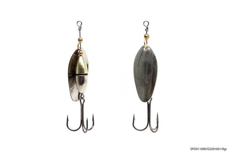 В этих приманках используются современные конструктивные решения, которые обеспечивают надежную и стабильную игру блесен, и, что самое главное, делают их очень привлекательными для любой хищной рыбы. Главный элемент блесен – вращающийся лепесток. Он очень легок, сделан из латуни и обладает хорошими динамическими показателями при вращении в воде, что позволяет делать проводку приманки на минимальной скорости. Лепесток «заводится» сразу, как только блесна начинает движение. Лепестки окрашены с двух сторон. С какой бы стороны хищная рыба не смотрела на приманку, ее расцветка остается одинаковой и привлекательной, что повышает интерес к блесне и, в итоге, приводит к результативной атаке. Немаловажная деталь – сердечник приманок, от которого зависит вес и дальнобойность приманки, а также ее устойчивость в воде. На всех тройниках связана яркая мушка, основное предназначение которой – снять последние сомнения у приготовившейся к атаке хищной рыбы.