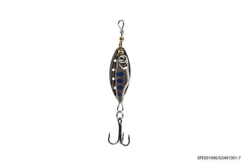 универсальная уловистая блесна. При создании приманки было изучено множество эксцентриковых вертушек японского производства и лучшие решения реализованы в данной модели блесны. Приманка имеет рельефный овальный лепесток и основание в виде детализированной рыбки. При проводке блесна создает не только блики, но и колебания, которые провоцируют хищника на атаку. Данная модель хорошо зарекомендовала себя при ловле на отечественных водоемах.