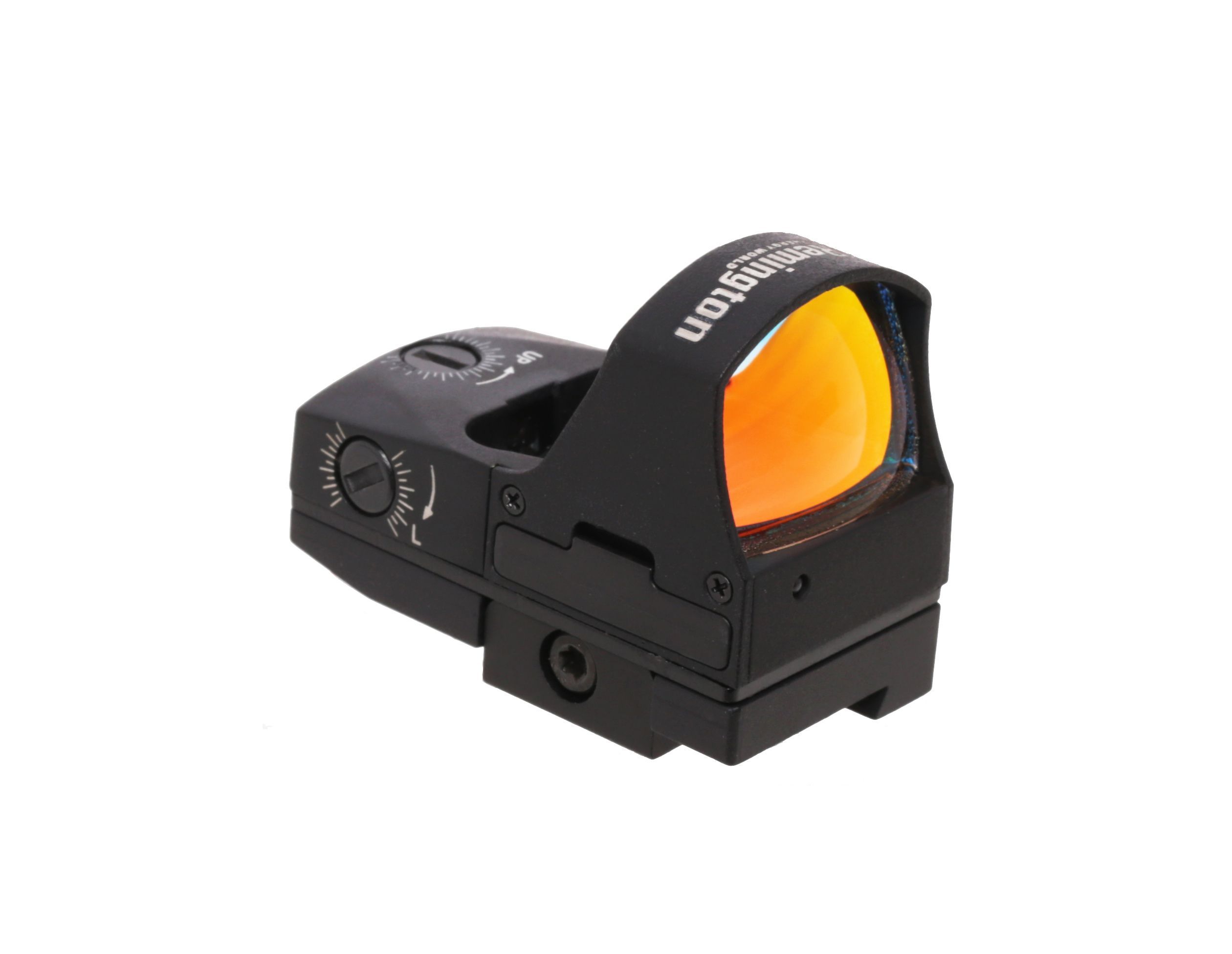 В качестве прицельной метки в рассматриваемом экземпляре используется красная точка, которая является одним из самых комфортных вариантов для пользователей. Отмечается также, что прицел Ремингтон располагает 5-уровневой настройкой яркости прицельной марки. Учитывая наличие подсветки, с таким оборудованием можно стрелять как при дневном свете, так и ночью при пониженном уровне освещения. В качестве элемента питания здесь применяется батарея CR-2032.