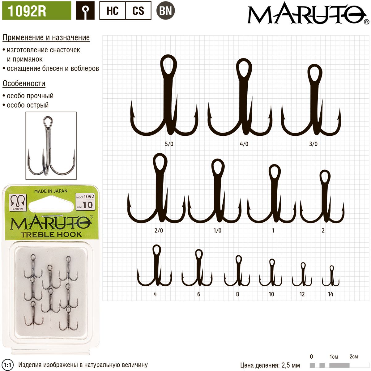 Мы продаем только «белый», официальный товар (РСТ). Гарантия на товар: Крючки Maruto Round 1092R BN № 4 (6 шт.) тройник на пенке предоставляется его изготовителем. Гарантийные сроки устанавливаются изготовителем товара. Гарантийное обслуживание осуществляется авторизованными изготовителем сервисными центрами на установленных изготовителем условиях. Обращаем внимание на то, что некоторые товары ремонтируются по серийному номеру или на основании документов, подтверждающих факт покупки товара. В этом случае гарантийный талон не предусмотрен. Какие товары подлежат к этой категории, можно уточнить у наших представителей или на сайтах производителей.