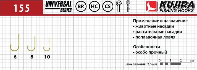 Крючки Kujira Universal 155 BR № 8 (10 шт.)