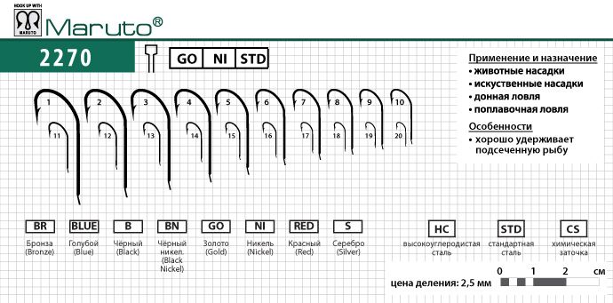 Крючки Maruto 2270 Go № 8 (10 шт.) универсал