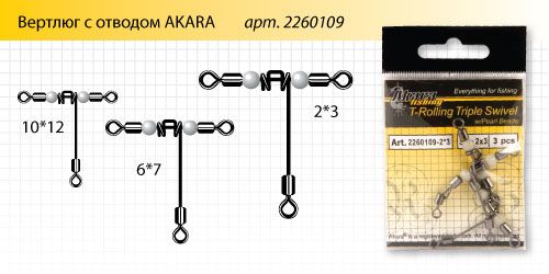 Купить Вертлюг с отводом Akara T-Rolling Triple Swivel 23702 №2*3 (3 шт.) в магазине www.predator.msk.ru вы можете заказав доставку по телефону 8-921-966-99-77
