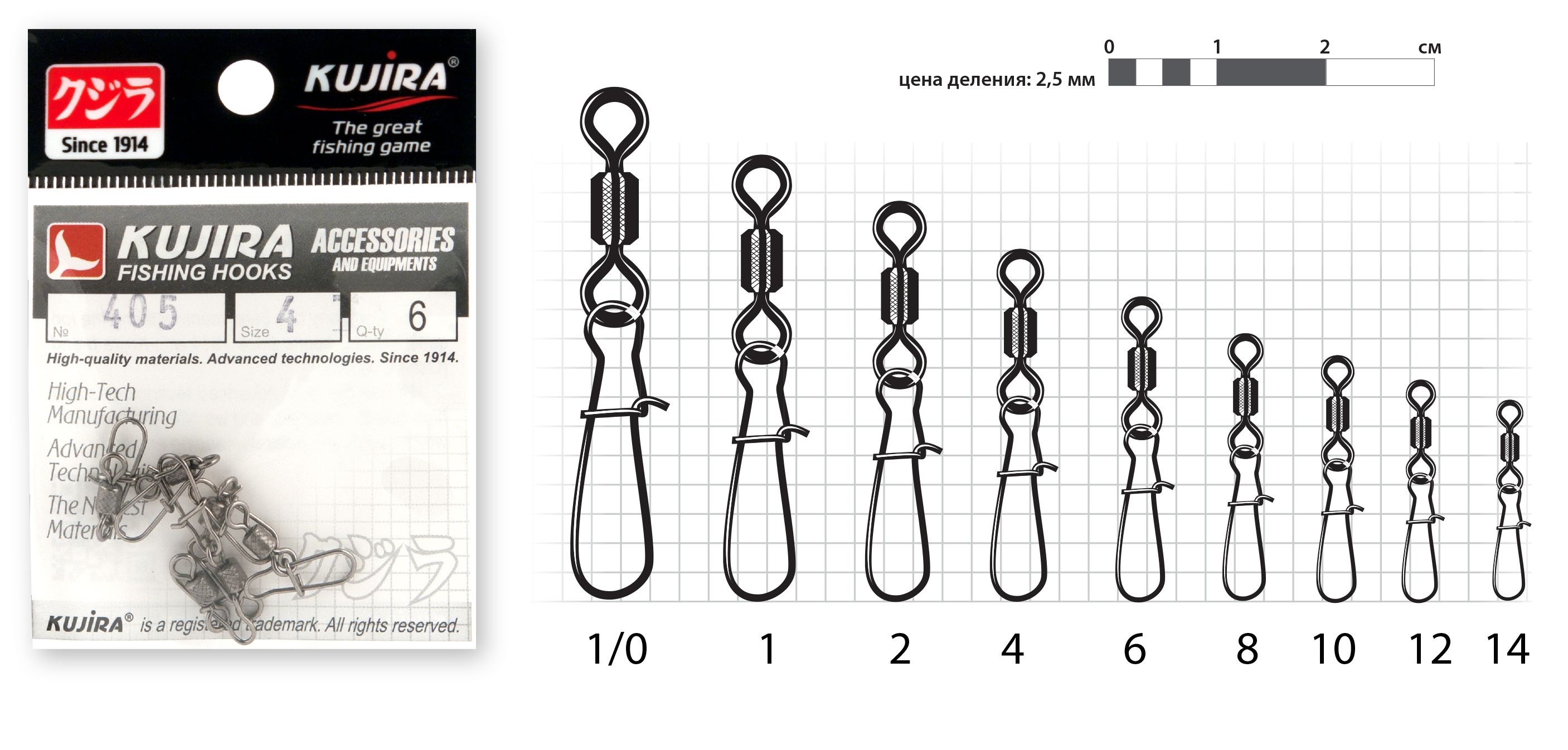Купить Вертлюг с застежкой Kujira 405 BN № 4 (6 шт.) в магазине www.predator.msk.ru вы можете заказав доставку по телефону 8-921-966-99-77