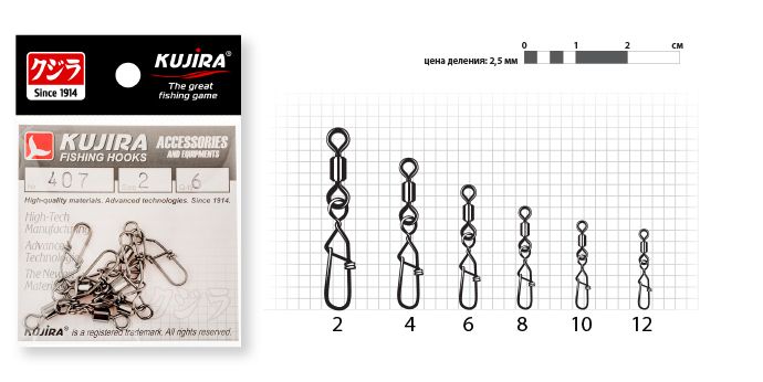 Купить Вертлюг с застежкой Kujira 407 BN №2 30 кг (6 шт.) в магазине www.predator.msk.ru вы можете заказав доставку по телефону 8-921-966-99-77