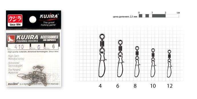 Купить Вертлюг с застежкой Kujira 410 BN № 8 (6 шт.) в магазине www.predator.msk.ru вы можете заказав доставку по телефону 8-921-966-99-77