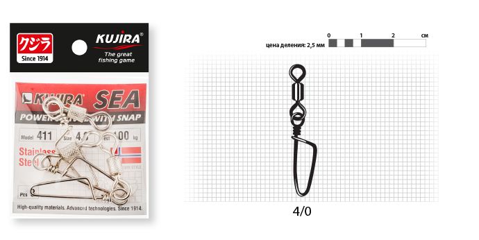 Купить Вертлюг с застежкой Kujira 411 SS №4/0 100 кг (3 шт.) нерж в магазине www.predator.msk.ru вы можете заказав доставку по телефону 8-921-966-99-77