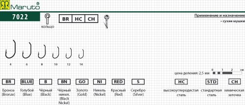 Крючки Maruto 7022 BR №12 (10 шт.) мушиный