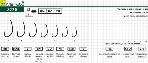 Купить Крючки Maruto 8220 BN № 8 (8 шт.) карповый в магазине www.predator.msk.ru вы можете заказав доставку по телефону 8-921-966-99-77