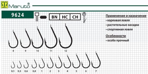 Купить Крючки Maruto 9624 ВN № 0,3 (10 шт.) карповый в магазине www.predator.msk.ru вы можете заказав доставку по телефону 8-921-966-99-77