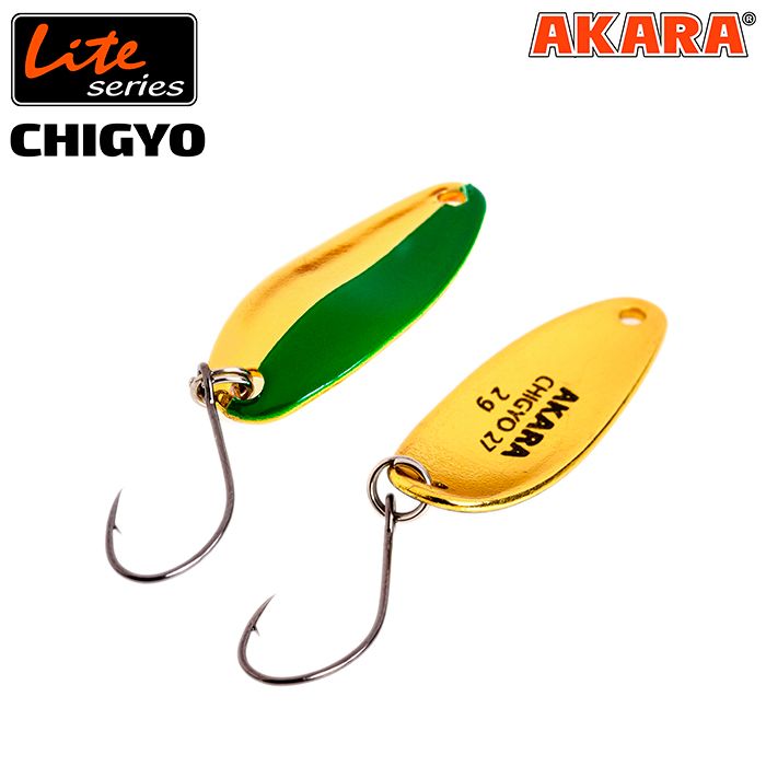 Блесна колебалка Akara Lite Series Chigyo 27. Одна из самых уловистых лайтовых приманок. Лучший вариант для начинающего рыболова,так как хороша практически при любом анимировани и очень тяжело испортить игру блесны. Хорошо ловит на медленной равноменой проводке и на мелких хаотичных рывках. Основной объект рыбалки – форель, окунь, голавль, красноперка.