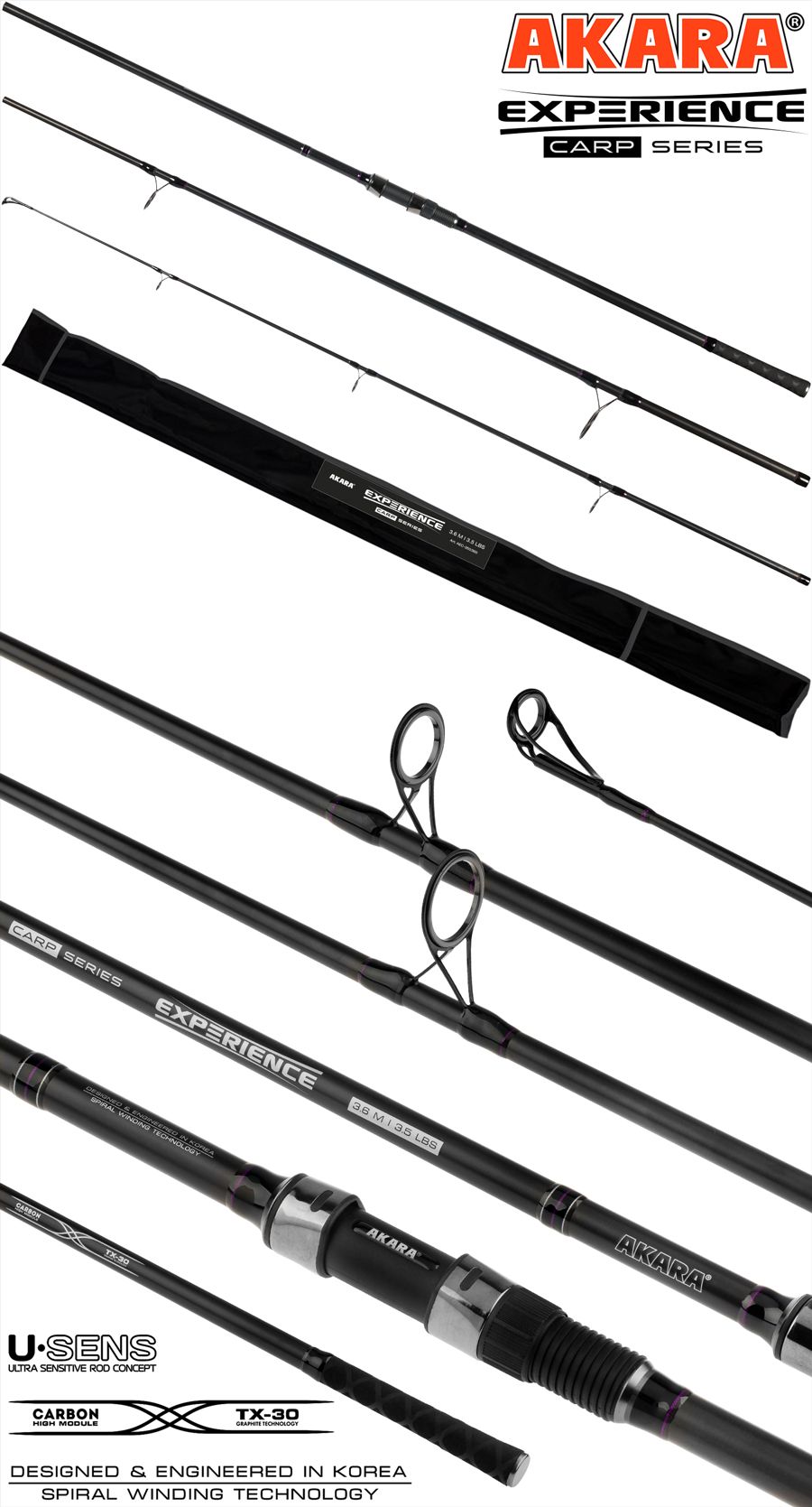 Купить Удилище штекерное угольное карповое 3 колена Akara Experience Carp 4 Lb 3,9 м в магазине www.predator.msk.ru вы можете заказав доставку по телефону 8-921-966-99-77