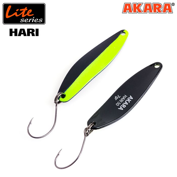 Akara Lite Series Hari 50. Блесна имеет превосходные полетные данные, позволяющие использовать ее на длинных дистанциях, что очень важно при ловле осторожной рыбы, прежде всего жереха и форели. Узкая, имитирующая малька форма блесны демонстрирует активную и устойчивую игру средней частоты. Так же, прогонистое тело приманки обеспечивает успешное применение ее на течении: при проводке на снос или против струи.