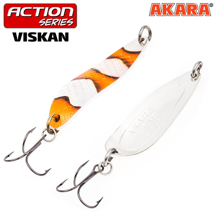 Akara Action Series Viskan – блесна разработана, прежде всего для ловли лососевых. Узкое тяжелое тело обеспечивает отличные полетные характеристики для точного и дальнего заброса, а характерный загиб гарантирует стабильную игру в струе. Приманка отличается резкой, агрессивной игрой, заводится с первых сантиметров проводки. Трофеями Viskan являются: семга, кумжа, чавыча, сима и таймень. В центральной России к ней не останутся равнодушными жерех, щука и судак.