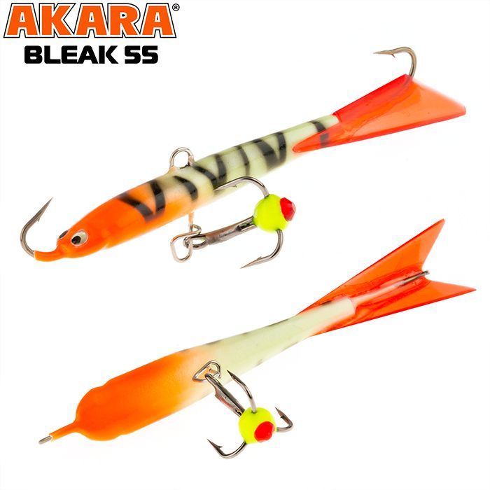 Балансир Akara Bleak 55 разработан для зимней ловли хищных рыб, таких как судак и окунь. Балансир изготовлен из качественных, морозостойких материалов и оснащен высокопрочными крючками и тройниками японской компании Maruto. Длина балансира 55 миллиметров, вес - 8 грамм. Балансиры этой модели красятся в уловистые цвета, причем окрашивание осуществляется с применением UV красок (светятся в ультрафиолетовом диапазоне), либо с использованием фосфорных красок (светятся в темноте). Балансир имеет стабильную, высокоамплитудную, повторяющуюся игру, которая обеспечит эффективную рыбалку.
