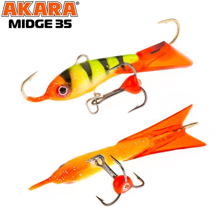 Балансир Akara Midge 35 разработан для зимней ловли хищных рыб, таких как окунь и судак. Балансир изготовлен из качественных, морозостойких материалов и оснащен высокопрочными крючками и тройниками японской компании Maruto. Длина балансира 35 миллиметров, вес - 4 грамм. Балансиры этой модели красятся в уловистые цвета, причем окрашивание осуществляется с применением флуоресцентных UV красок (светятся в ультрафиолетовом диапазоне), либо с использованием люминесцентных фосфорных красок (светятся в темноте). Балансир прекрасно отзывается на анимацию и имеет яркую, высокоамплитудную игру, которая может спровоцировать на поклевку даже пассивного хищника. Балансир Akara Midge станет прекрасным пополнением арсенала любителей зимней рыбалки.