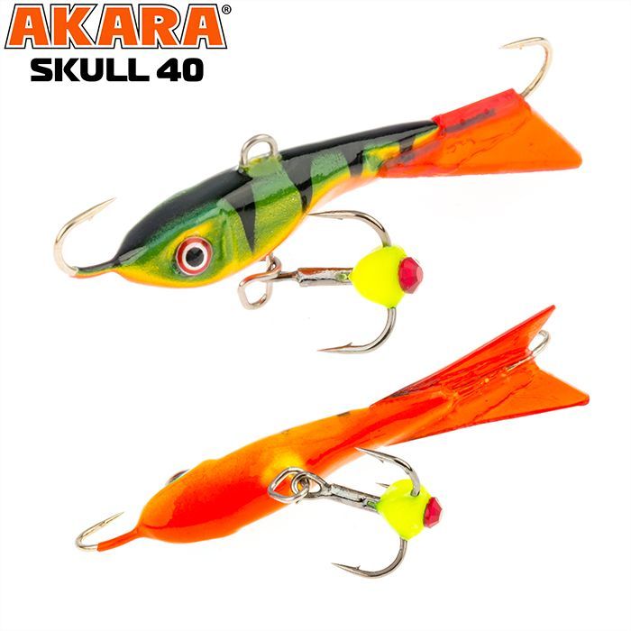 Балансир Akara Skull 40 разработан для зимней ловли хищных рыб, таких как окунь и судак. Балансир изготовлен из качественных, морозостойких материалов и оснащен высокопрочными крючками и тройниками японской компании Maruto. Длина балансира 40мм, вес - 6г. Балансиры этой модели красятся в уловистые цвета, причем окрашивание осуществляется с применением флуоресцентных UV красок (светятся в ультрафиолетовом диапазоне), либо с использованием люминесцентных фосфорных красок (светятся в темноте). Балансир прекрасно отзывается на анимацию и имеет яркую, высокоамплитудную игру, которая может спровоцировать на поклевку даже пассивного хищника. Балансир Akara Skull 40 станет прекрасным пополнением арсенала любителей зимней рыбалки.