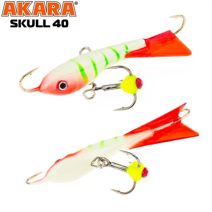 Балансир Akara Skull 40 разработан для зимней ловли хищных рыб, таких как окунь и судак. Балансир изготовлен из качественных, морозостойких материалов и оснащен высокопрочными крючками и тройниками японской компании Maruto. Длина балансира 40мм, вес - 6г. Балансиры этой модели красятся в уловистые цвета, причем окрашивание осуществляется с применением флуоресцентных UV красок (светятся в ультрафиолетовом диапазоне), либо с использованием люминесцентных фосфорных красок (светятся в темноте). Балансир прекрасно отзывается на анимацию и имеет яркую, высокоамплитудную игру, которая может спровоцировать на поклевку даже пассивного хищника. Балансир Akara Skull 40 станет прекрасным пополнением арсенала любителей зимней рыбалки.