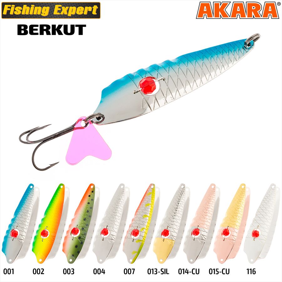 Berkut - эксклюзивная колебалка от Akara. Рефленная поверхность одной из сторон блесны делает их сопротивление в воде разным. За счет этого приманка имеет порхающую игру, отличную от своих аналогов.
