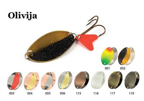Olivija - блесна предназначена для ловли щуки на мелководье и вдоль травы, а так же для ловли троллингом. Обладает размашистой игрой.