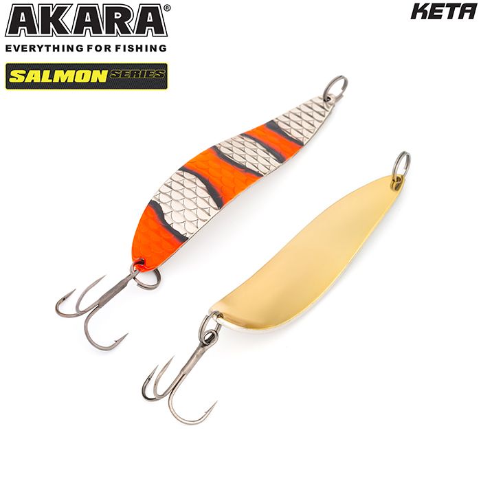 Колеблющаяся блесна Akara серии Salmon. Пожалуй, одна из лучших колебалок для ловли лососёвых пород рыб. Благодаря специально разработанной и многократно испытанной форме, великолепно провоцирует хищника на атаку. Варианты различных весов и размеров, позволяют ловить ею как на сносе течением при боковых забросах, так и в ямах, но не с сильным течением. Благодаря своей форме, блесна обладает, мелкой высокочастотной игрой, меняющейся по амплитуде, в зависимости от размера и веса, что как раз так нравится лососёвым. Щука, окунь, судак и пассивный жерех, тоже не оставят данную приманку без внимания. Из-за особенностей прямой проводки, на лёгкие веса Akara Salmon, можно успешно ловить по мелководным перекатистым речкам и травянистым озёрам.