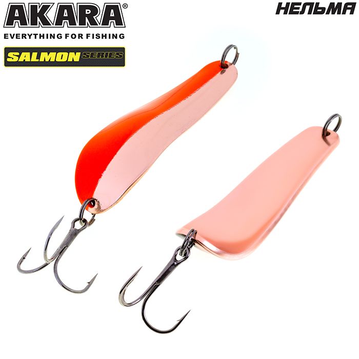 Колеблющаяся блесна Akara серии Salmon. Пожалуй, одна из лучших колебалок для ловли лососёвых пород рыб. Благодаря специально разработанной и многократно испытанной форме, великолепно провоцирует хищника на атаку. Варианты различных весов и размеров, позволяют ловить ею как на сносе течением при боковых забросах, так и в ямах, но не с сильным течением. Благодаря своей форме, блесна обладает, мелкой высокочастотной игрой, меняющейся по амплитуде, в зависимости от размера и веса, что как раз так нравится лососёвым. Щука, окунь, судак и пассивный жерех, тоже не оставят данную приманку без внимания. Из-за особенностей прямой проводки, на лёгкие веса Akara Salmon, можно успешно ловить по мелководным перекатистым речкам и травянистым озёрам.