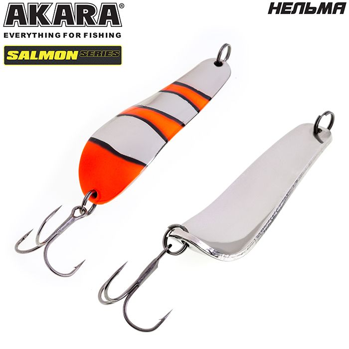 Колеблющаяся блесна Akara серии Salmon. Пожалуй, одна из лучших колебалок для ловли лососёвых пород рыб. Благодаря специально разработанной и многократно испытанной форме, великолепно провоцирует хищника на атаку. Варианты различных весов и размеров, позволяют ловить ею как на сносе течением при боковых забросах, так и в ямах, но не с сильным течением. Благодаря своей форме, блесна обладает, мелкой высокочастотной игрой, меняющейся по амплитуде, в зависимости от размера и веса, что как раз так нравится лососёвым. Щука, окунь, судак и пассивный жерех, тоже не оставят данную приманку без внимания. Из-за особенностей прямой проводки, на лёгкие веса Akara Salmon, можно успешно ловить по мелководным перекатистым речкам и травянистым озёрам.