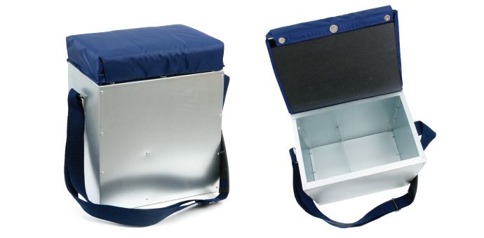 Плавающие ящики держатся на плаву за счёт пенопласта, находящегося внутри крышки Сверху пенопласта, под тканью, находится пенополиэтилен, который придаёт мягкость сидения. Ткань сумочная, непромокаемая, легко моется. Оцинкованные ящики по размеру и внешнему виду соответствуют алюминиевым. Все ящики снабжены креплением для удочки, находящийся на внутренней стороне крышки. В ящиках нет клейких конструкций, всё соединено с помощью заклёпок. Крышка, ящика на 18 литров, разборная. С лицевой стороны закрывается с помощью 3-х магнитов.