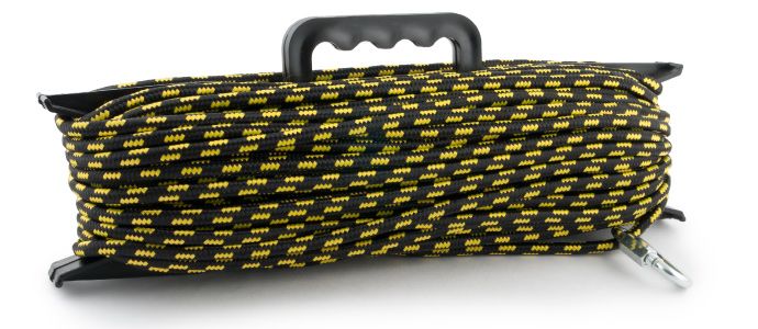 Шнур Akara якорный плетеный ПЭ с карабином 8 мм 50 м на мотовиле