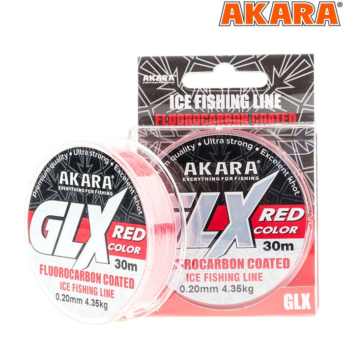 Рыболовная леска Akara GLX - относится к категории гибридных рыболовных лесок, она изготовлена из высококачественного полимера и имеет флюорокарбоновое покрытие. Благодаря этому леска имеет высокую прочность, практически не растягивается, не намокает, обладает высокой абразивостойкостью и может быть использована в тяжелых условиях лова. При ловле зимой леска не обмерзает и не истирается об острый край лунки. При использовании поводков для донной ловли, она так же выдерживает ракушечник и каменистое дно. Благодаря тому, что флюорокарбон практически невидим в воде, леска с покрытием из этого материала тоже малозаметна, что дает возможность поймать любую, даже самую осторожную рыбу.При этом красный цвет лески делает ее более заметной на снегу. При подборе лески надо учитывать, что данная леска тонущая.