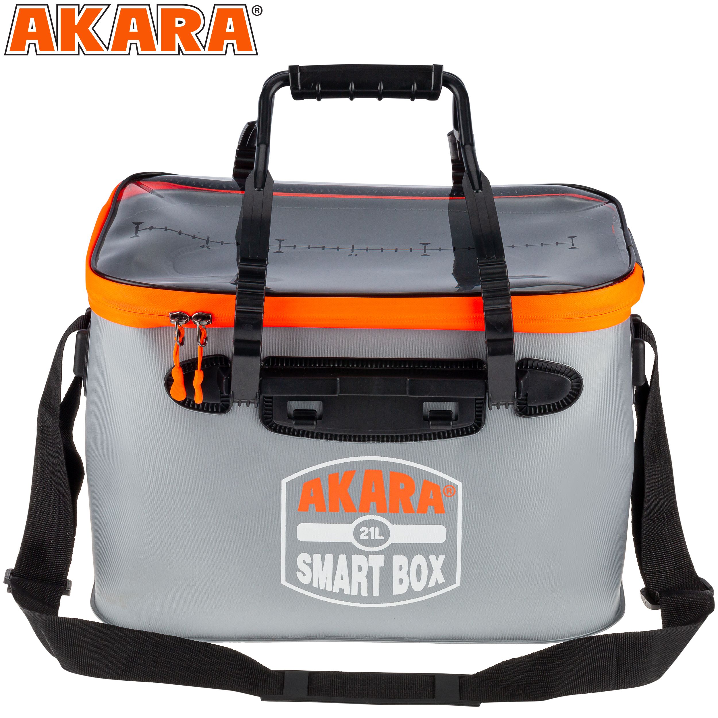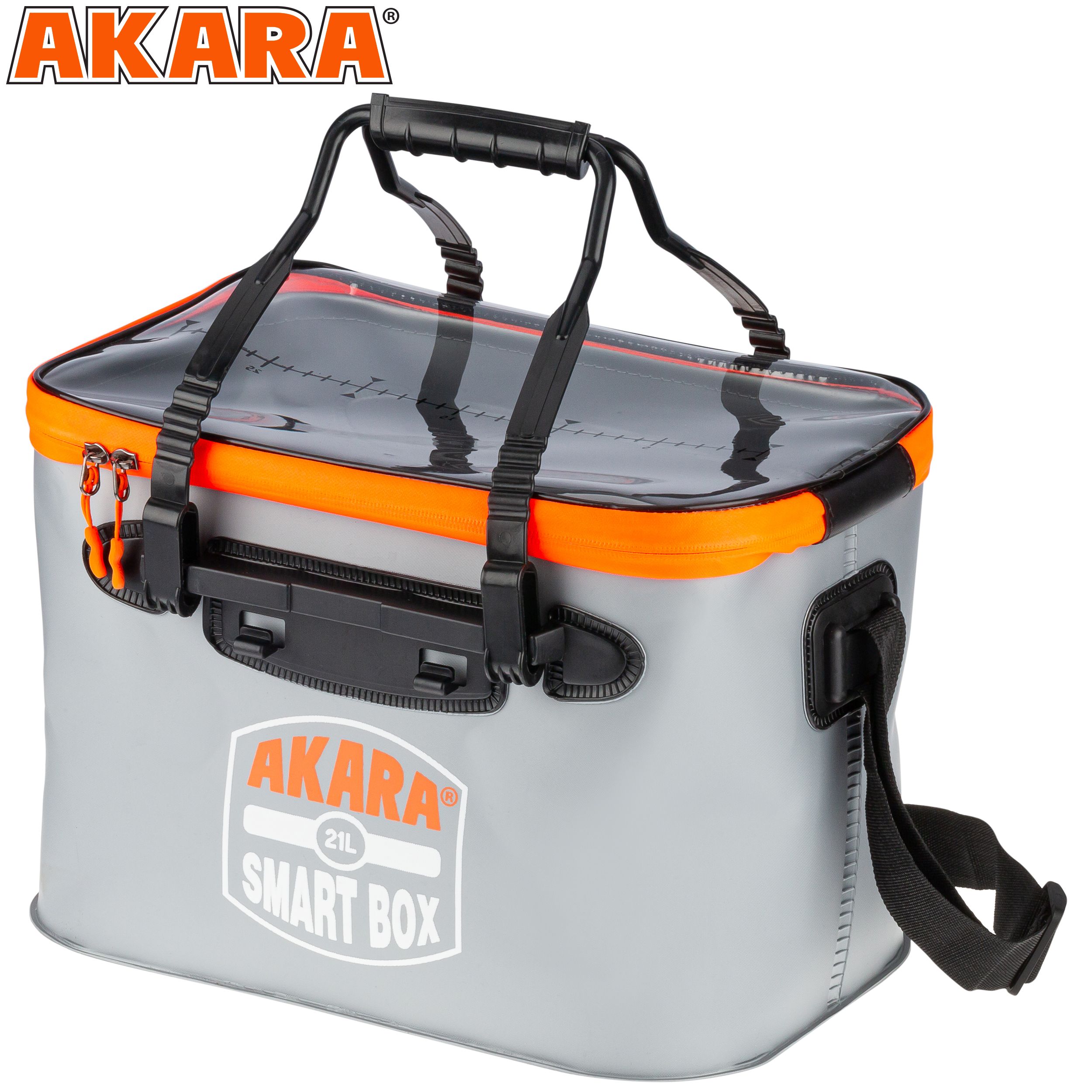 Сумка-кан Akara Smart Box — это незаменимый аксессуар для рыбаков и туристов. Она изготовлена из прочного ПВХ, поэтому прослужит вам долгое время. Благодаря надёжной и плотной молнии, сумка максимально герметична, что позволяет сохранить ваши вещи сухими. Эта сумка многофункциональна: её можно использовать для хранения и транспортировки рыбы, замешивания прикормки, переноса воды и хранения рыболовных снастей и принадлежностей. Сумка оснащена двумя прочными ручками для переноски и лямкой для ношения на плече, что обеспечивает удобство использования. Отлично подойдёт для организации хранения в лодке, катере или на яхте. Прозрачная верхняя крышка позволяет легко увидеть содержимое сумки, не открывая её.