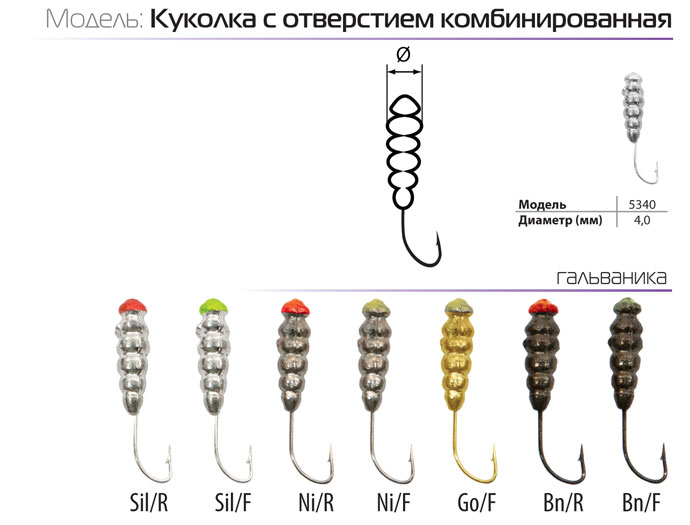 Мормышка Spider литая Куколка с отверст. комб. 4,0 мм Sil/F