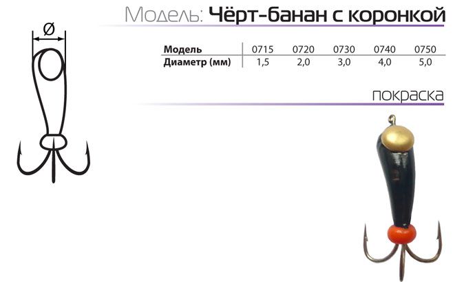 Купить Мормышка W Spider Черт-банан с коронкой 5,0 мм в магазине www.predator.msk.ru вы можете заказав доставку по телефону 8-921-966-99-77