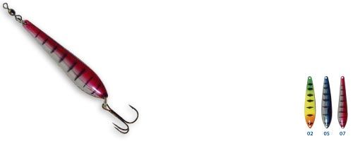Finka - типичная блесна для ловли лососевых на течении. Хорошо контролируема при простукивании дна, обладает дальним забросом.