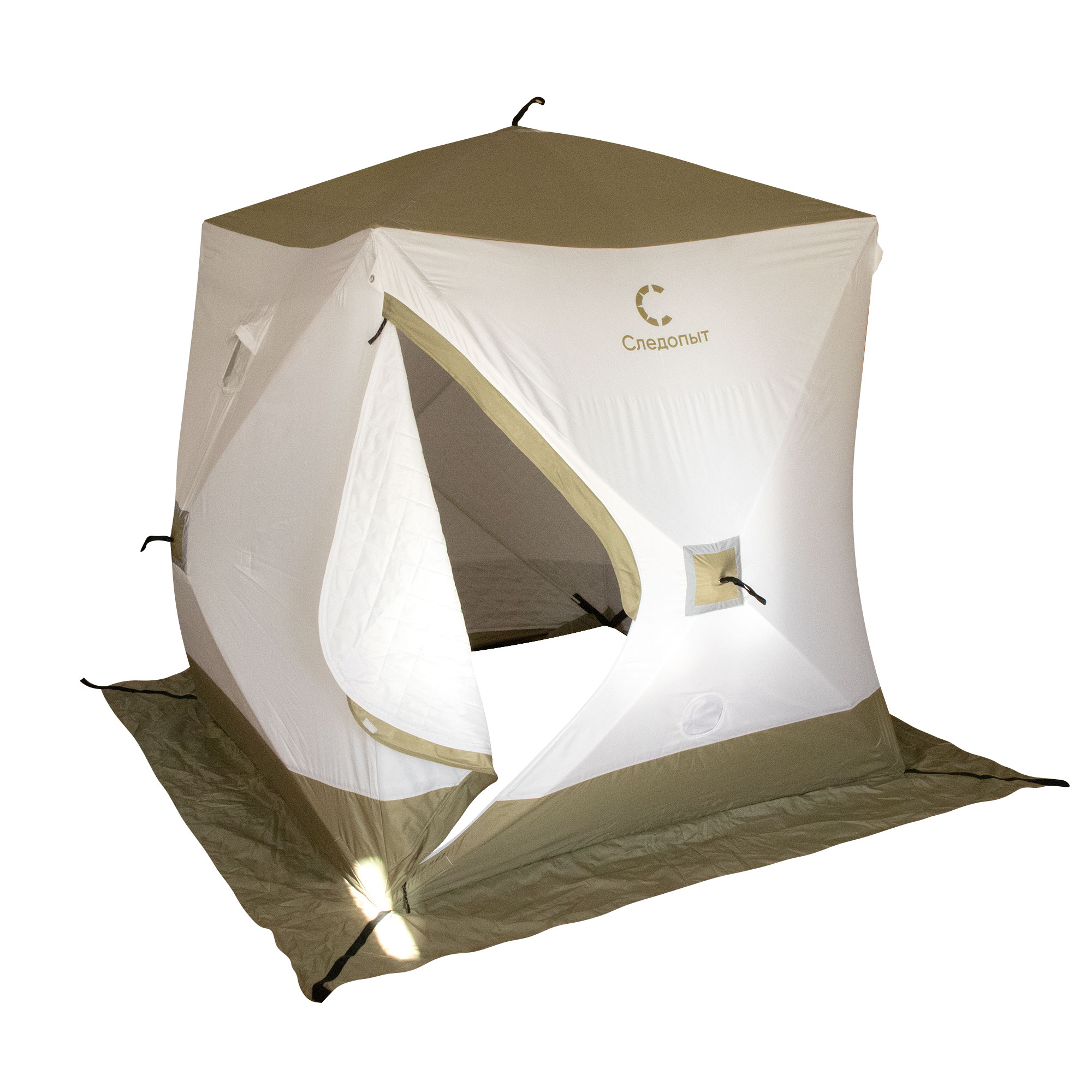 Палатка зимняя куб СЛЕДОПЫТ Premium 2,1х2,1 м, S по полу 4,4 кв.м, 3 слоя, цв. оливковый/белый, PF-TW-14