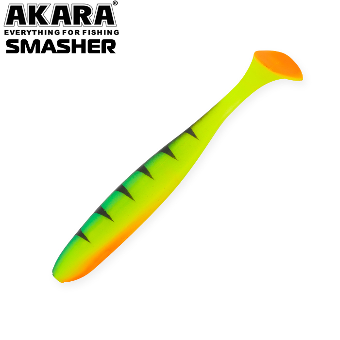 Akara Smasher - cерия виброхвостов хорошо зарекомендовавших себя у многих рыболовов. Сплющенное тело приманки заканчивается довольно широким, почти круглым пятаком, что заставляет ее показывать максимально естественную, высокочастотную игру. Smasher настолько универсален и обладает такими характеристиками, что может использоваться как на джигах с любым весом, так и на различных оснастках с огрузкой и без. Выпускается в размерах 50, 70, 100 и 125 мм.