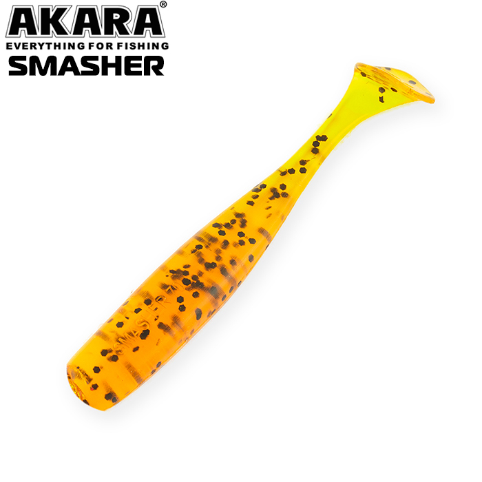 Akara Smasher - cерия виброхвостов хорошо зарекомендовавших себя у многих рыболовов. Сплющенное тело приманки заканчивается довольно широким, почти круглым пятаком, что заставляет ее показывать максимально естественную, высокочастотную игру. Smasher настолько универсален и обладает такими характеристиками, что может использоваться как на джигах с любым весом, так и на различных оснастках с огрузкой и без. Выпускается в размерах 50, 70, 100 и 125 мм.