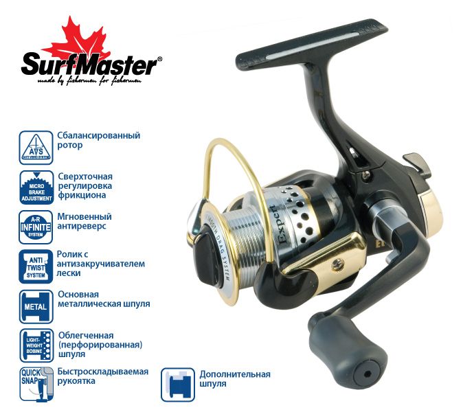 Surf Master Expert ET - серия универсальных безынерционных катушек. Модель выпускается в четырёх размерах. 1000 и 2000 хорошо подойдут для поплавочной ловли, лёгкого и среднего спиннинга. Модели 3000 и 4000 это серьёзные агрегаты способные справиться с большими нагрузками, такими как джиг, ловля на дорожку, донная ловля Ролик лесоукладывателя дуга и край шпули имеют защитное покрытие из нитрида титана. Плавность и отзывчивость фрикциона обеспечивает, установленный в основании шпули, шарикоподшипник. Шпуля катушки облегчённая, перфорированная. На катушке установлена рукоятка из твёрдосплавного точёного алюминия. Силовой агрегат выполнен из пары твердосплавный алюминий и бронза. Максимальная нагрузка на фрикцион для модели 1000- 5кг, 2000- 5,5кг, 3000 – 7,5кг, 4000 – 8кг.