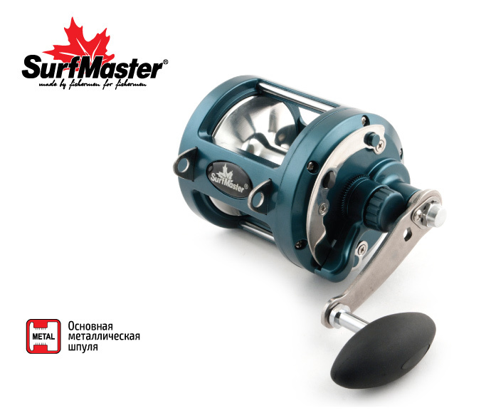 Surf Master Sea Pro 9000 – силовой мультипликатор с быстрым фрикционом. Отсутствие лесоукладывателя говорит о том, что с ним можно идти на самую крупную рыбу. Металлическая рама, металлический механизм, оснащенный 8-ю шарикоподшипниками, позволяют использовать его при ловли с приманками весом до 3кг. Быстрый фрикцион поможет вам с достоинством справиться с трофейной рыбой весом до 500кг. Алюминиевая цельнолитая шпуля. Ручка имеет два положения намотки: ускоренную и пониженную, силовую. Максимальное усилие на фрикцион 32кг.
